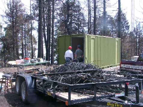 ![]() Trailer filled with burned cables, antennas & tower sections. |