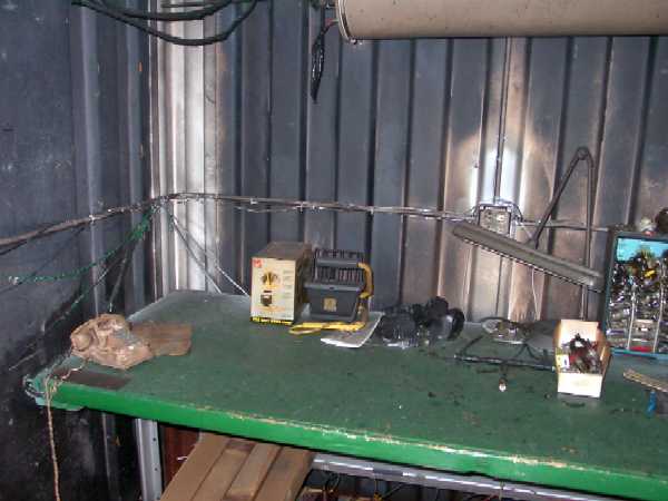 ![]() The workbench and melted telephone. |